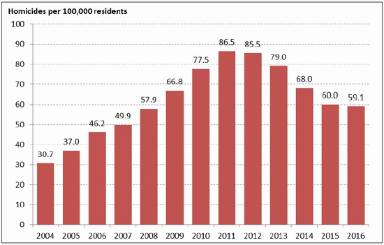 Figure 3. Homicide Rate in Honduras: 2004-2016
