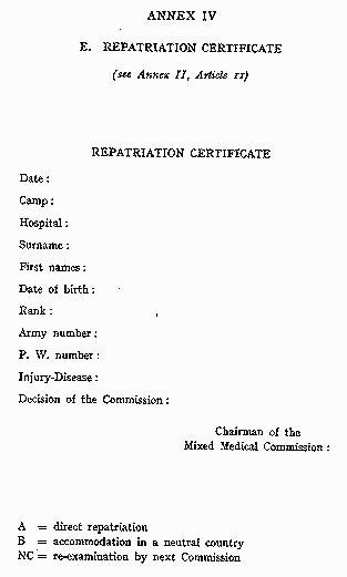 Art 11. The decisions made by the Mixed Medical Commissions in each specific case shall be communicated, during the month following their visit, to the Detaining Power, the Protecting Power and the International Committee of the Red Cross. The Mixed Medical Commissions shall also inform each prisoner of war examined of the decision made, and shall issue to those whose repatriation has been proposed, certificates similar to the model appended to the present Convention.