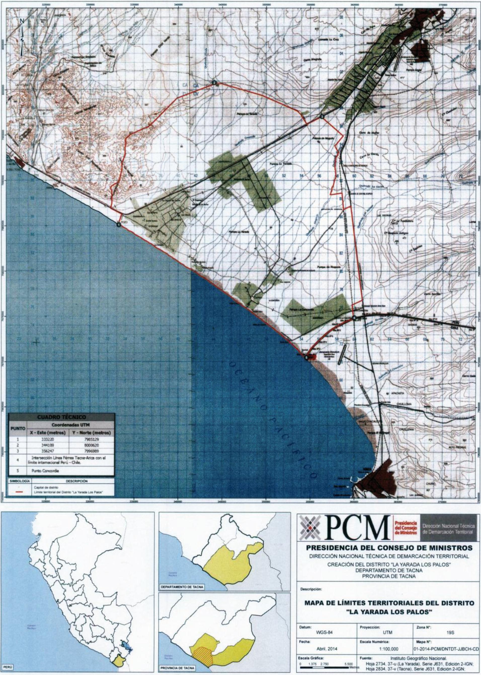 Forma parte de la presente Ley la representación cartográfica que define el ámbito de creación del distrito de La Yarada Los Palos.